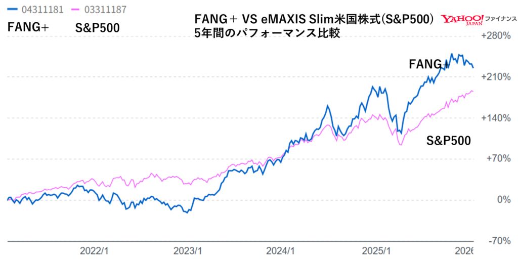 私はリスクを多少とっても早く資産形成をしたいという思う野心があり、S&P500よりもFANG+を選択します。