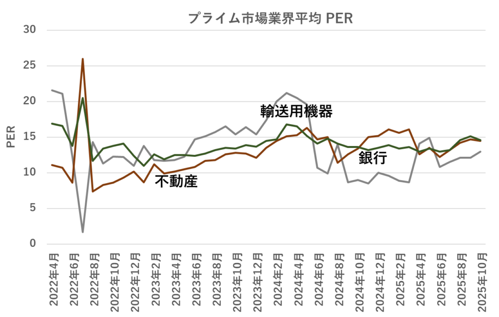 銀行、不動産、自動車産業は成熟した産業であり、成長性は低いです。よって株式市場からの評価も低くなりがちで、低いPERとなる傾向があります。